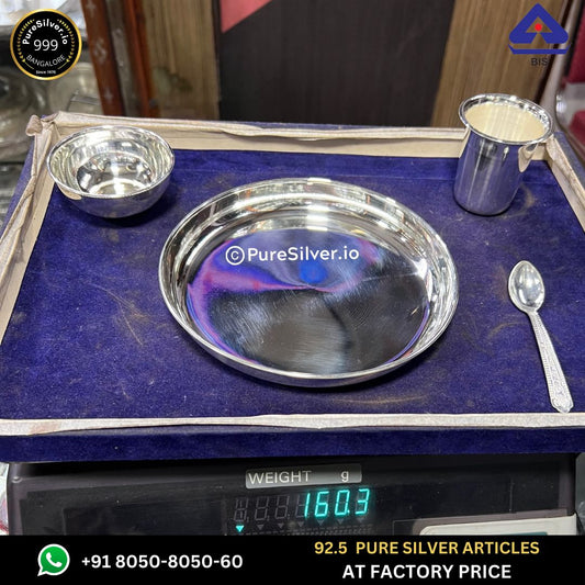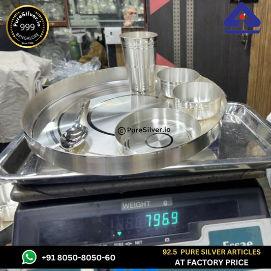 7 Pcs Pure Silver Pooja Thali Set, 1 Kg, 925 BIS Hallmarked