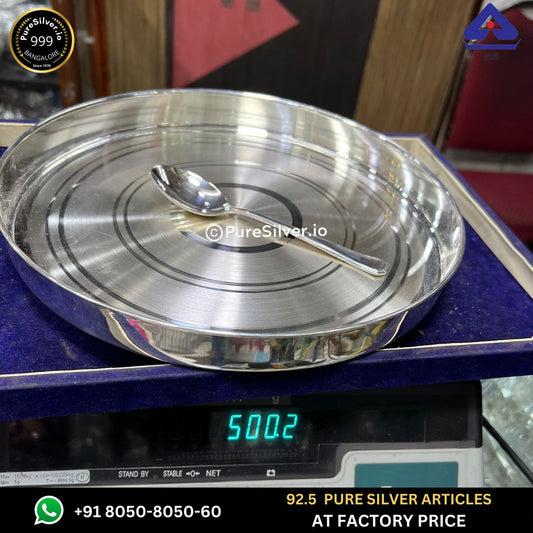 Luxury 925 Pure Silver Pooja Thali Set, 500 grams, BIS Hallmarked