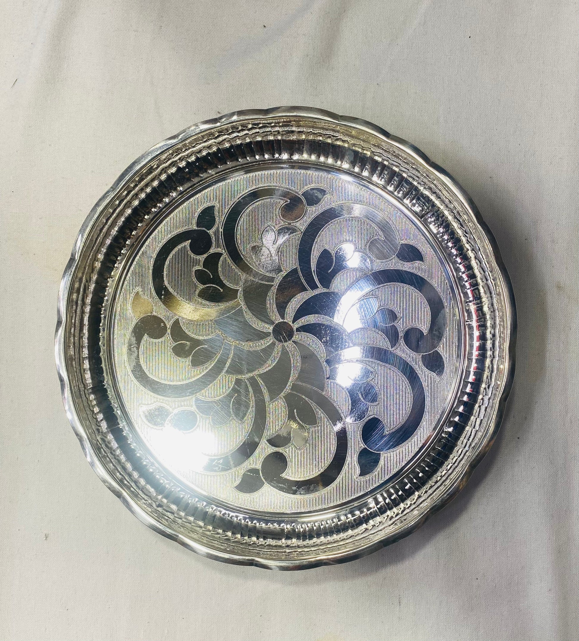 • Pure Silver Plate for Pooja Arivana Designer Silver Plate, 150 grams, BIS Hallmarked…Pure silver plate/thali with 925 BIS hallmark by PureSilver.io.