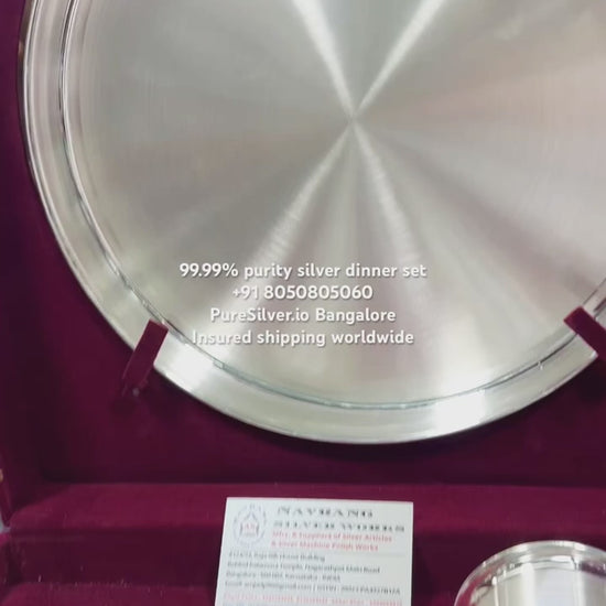 - 11.25" Pure Silver Dinner Set with 990 BIS Hallmark, ~1350 grams, pure silver dinner thali set from PureSilver.io.