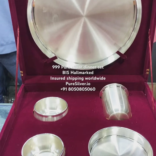 - 12.25" Pure Silver Dinner Set with 925 BIS Hallmark, ~1360 grams…¡Premium 925 BIS hallmarked pure silver dinner thali set from PureSilver.io.