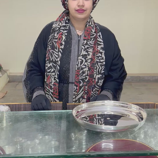 11.75 Pure Silver Thali for Eating with 24k Pure Gold Flower (0.5g), 925 BIS Hallmarked